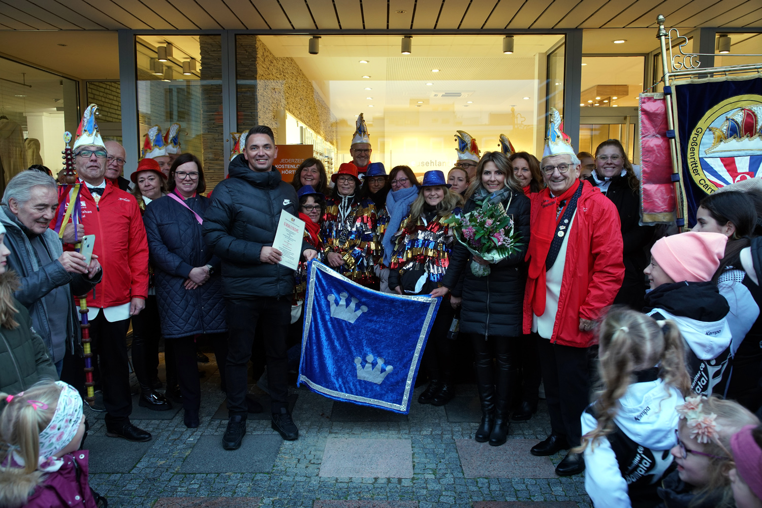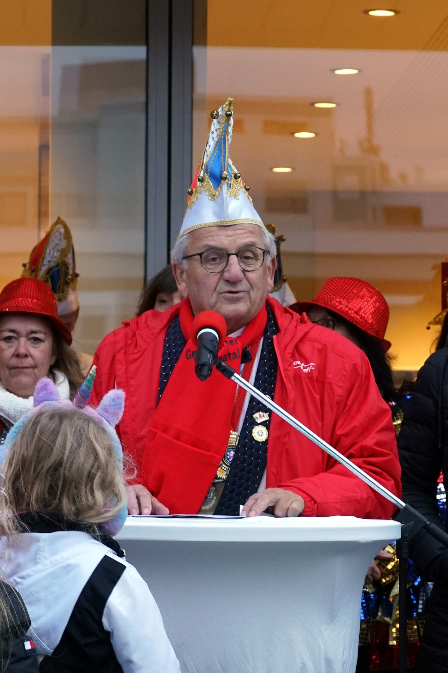 (JS) Am 10.11.2023 war es mal wieder soweit. Das scheidende Prinzenpaar Sebastian I. und Jesseca I. nahm seine letzte offizielle Amtshandlung wahr. Vorher richtete unser Präsident Dietrich Geißer noch einige Worte an das anwesende närrische Volk, in denen er die Narrenschar auf die kommende Kampagne einschwor. Anschließend trat unsere Bürgermeisterin Manuele Strube, welche zusammen mit dem Stadtverordnetenvorstehern Reiner Heine, zu uns gefunden hatte, ans Mikrofon und entsandte einige Grußworte sowie den Wunsch einer erfolgreichen Session an die Narrenschar. Zum Abschluss sprach unser Prinzenpaar seinen Dank für die vergangene Session aus und bedankte sich insbesondere bei seinem Begleiterpaar.
