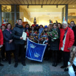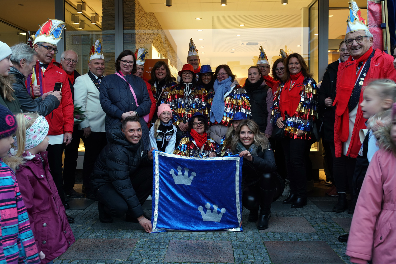 Dann war der Augenblick da. Unser Prinzenpaar enthüllte im Kreise der anwesenden Gardetänzerinnen und Elferratsmänner- und frauen die frisch eingelassene Prinzenplatte. Nach der Enthüllung und bevor der Himmel seine Schleusen öffnete wurden noch die obligatorischen Fotos gemacht.