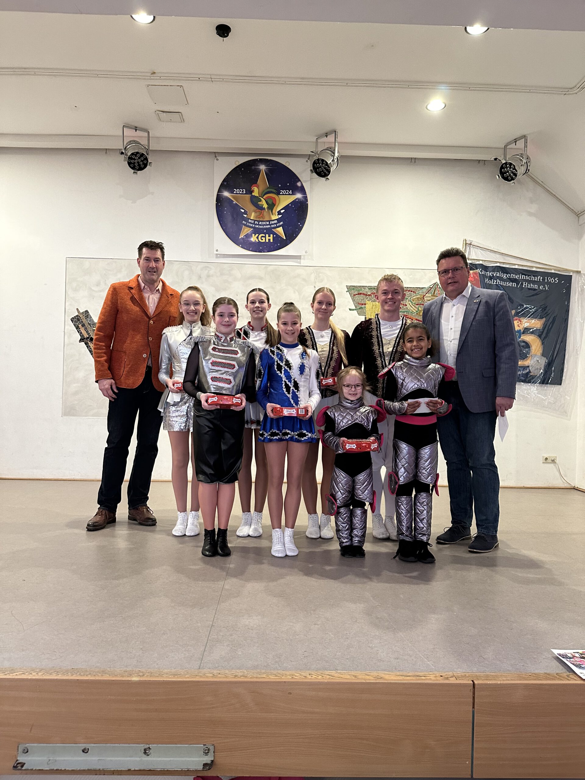 Unter starken Applaus überreichten sie den Abordnungen der Tänzerinnen und Tänzer jeweils einen Geldbetrag und ein kleines „süßes“ Geschenk.