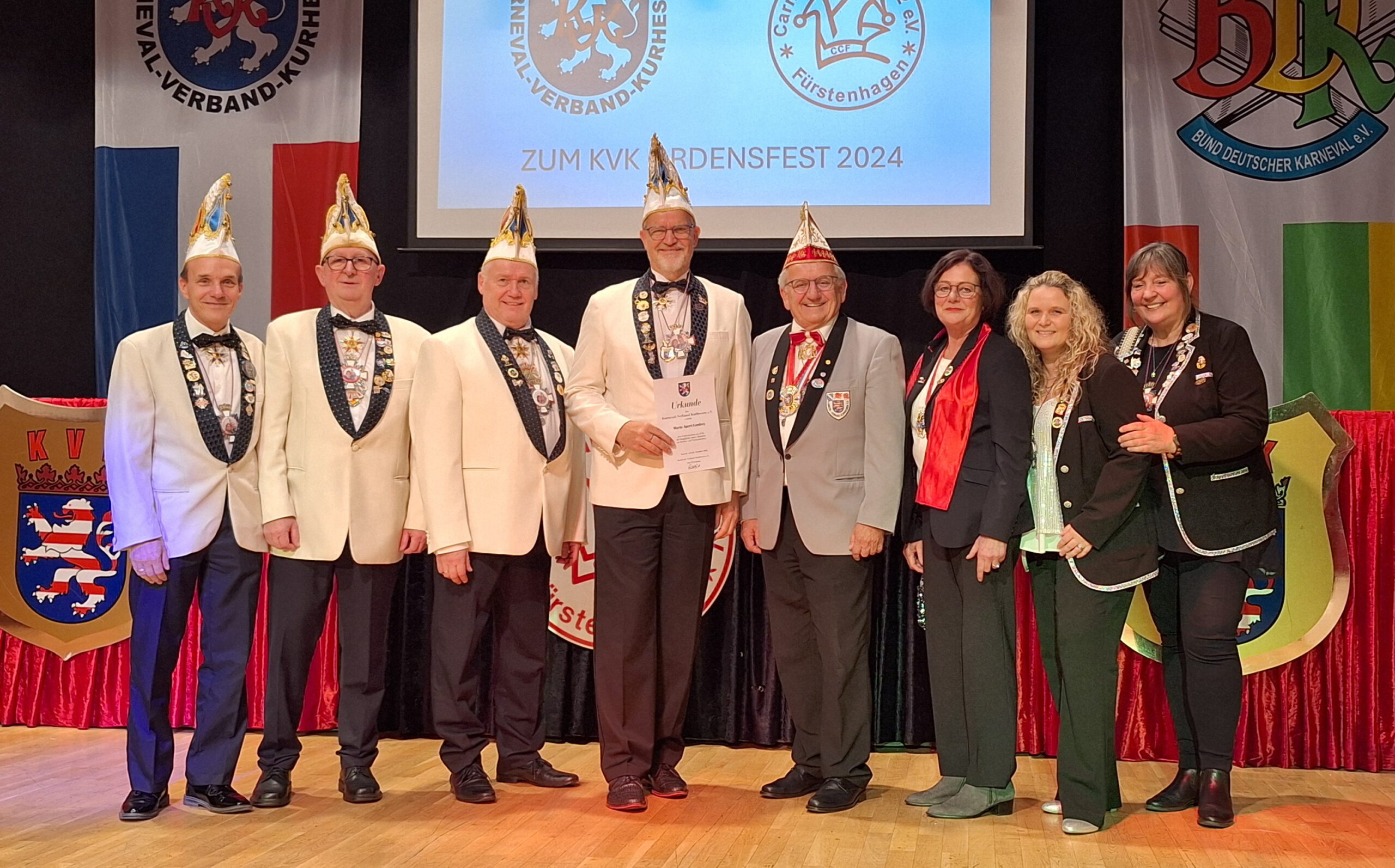 Anlässlich des KVK-Ordensfestes am 10. November 2024 beim Carneval-Club-Fürstenhagen 1962 e.V. wurde bereits GCG-Sitzungspräsident Mario Apert-Vandrey für seine mehr als 5jährige ehrenamtliche Arbeit zum Wohle der Gemeinschaft mit dem KVK-Verdienstorden geehrt.