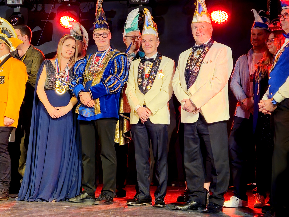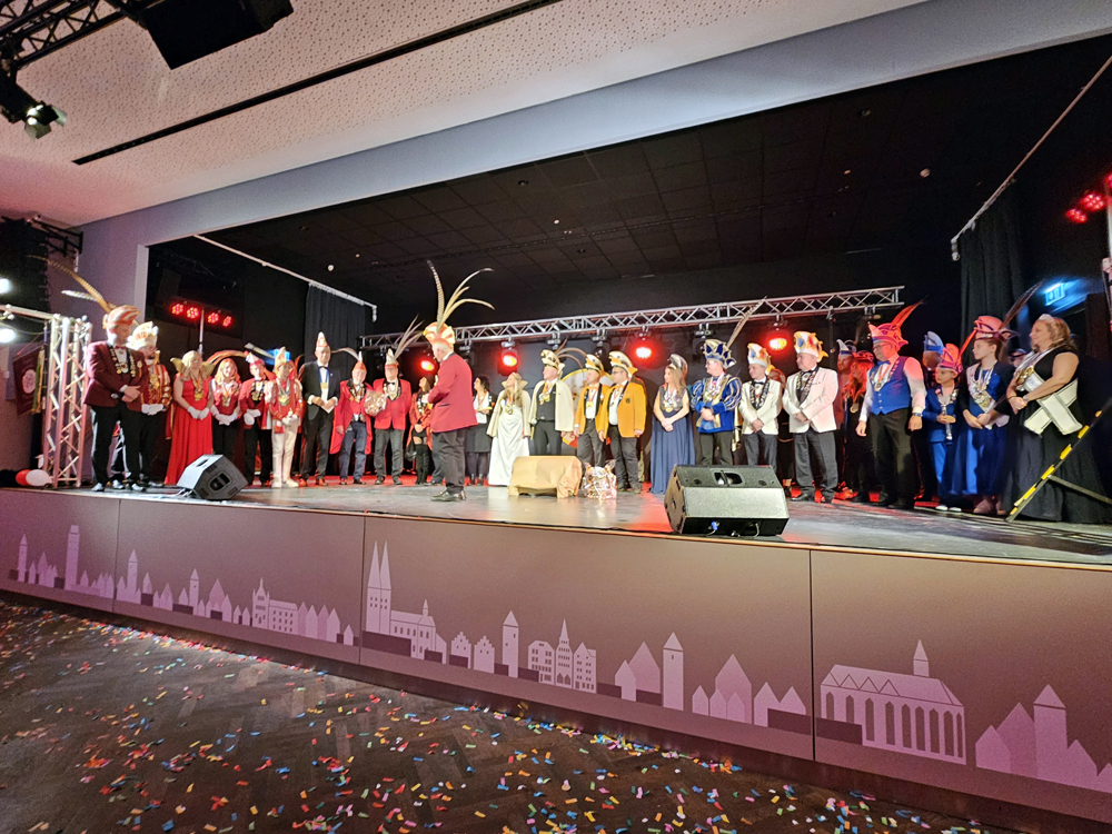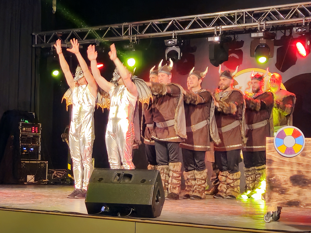 Das Prinzenpaar der GCG Nina I. und Volker I. hat sich mit einem großen Gefolge auf den Weg gemacht und als Gastgeschenk den Auftritt des Männerballetts im Gepäck gehabt.