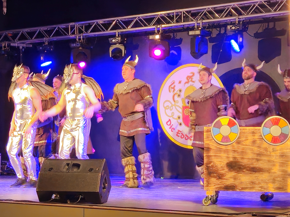 Höhepunkt des Abends war der Auftritt von Tante Lilli. Sie brachte den Saal zum Beben. Spätestens als die Ahle Wurscht besungen wurde, rissen die Dämme. Auch Caro Best aus Korbach rockte den Saal mit ihrem Gesang. Unser Männerballett brachte ebenfalls die Hütte zum Beben und erhielt stehenden Applaus. Der Auftritt des Männerballetts der GCG bei den Eddernarren hat ja mittlerweile Tradition.