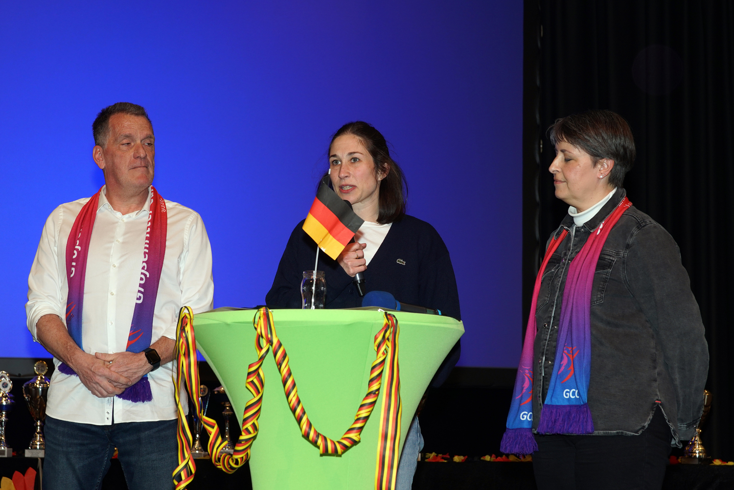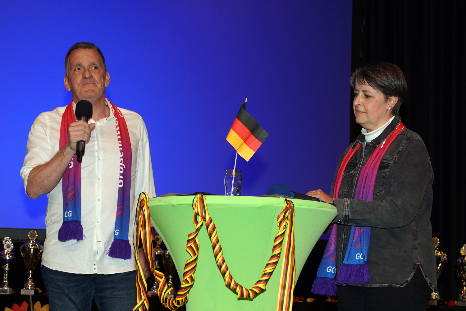 (JS) Am Montag fand in der Stadthalle Baunatal die Abschlussfeier der GCG mit ca. 300 Gästen statt. Sie beendete den sportlichen Teil der Saison 2024/2025. Moderiert wurde die Veranstaltung von Kathrin Umbach und Burkhard Horn. „Special Guest“ war an diesem Abend der KVK-Präsident Heiko Rudolph, der Grußworte des KVK ausrichtete und die Glückwünsche für die erreichten Platzierungen überbrachte. Er bedauert es sehr, dass er am Wochenende nicht in Hannover dabei sein konnte.