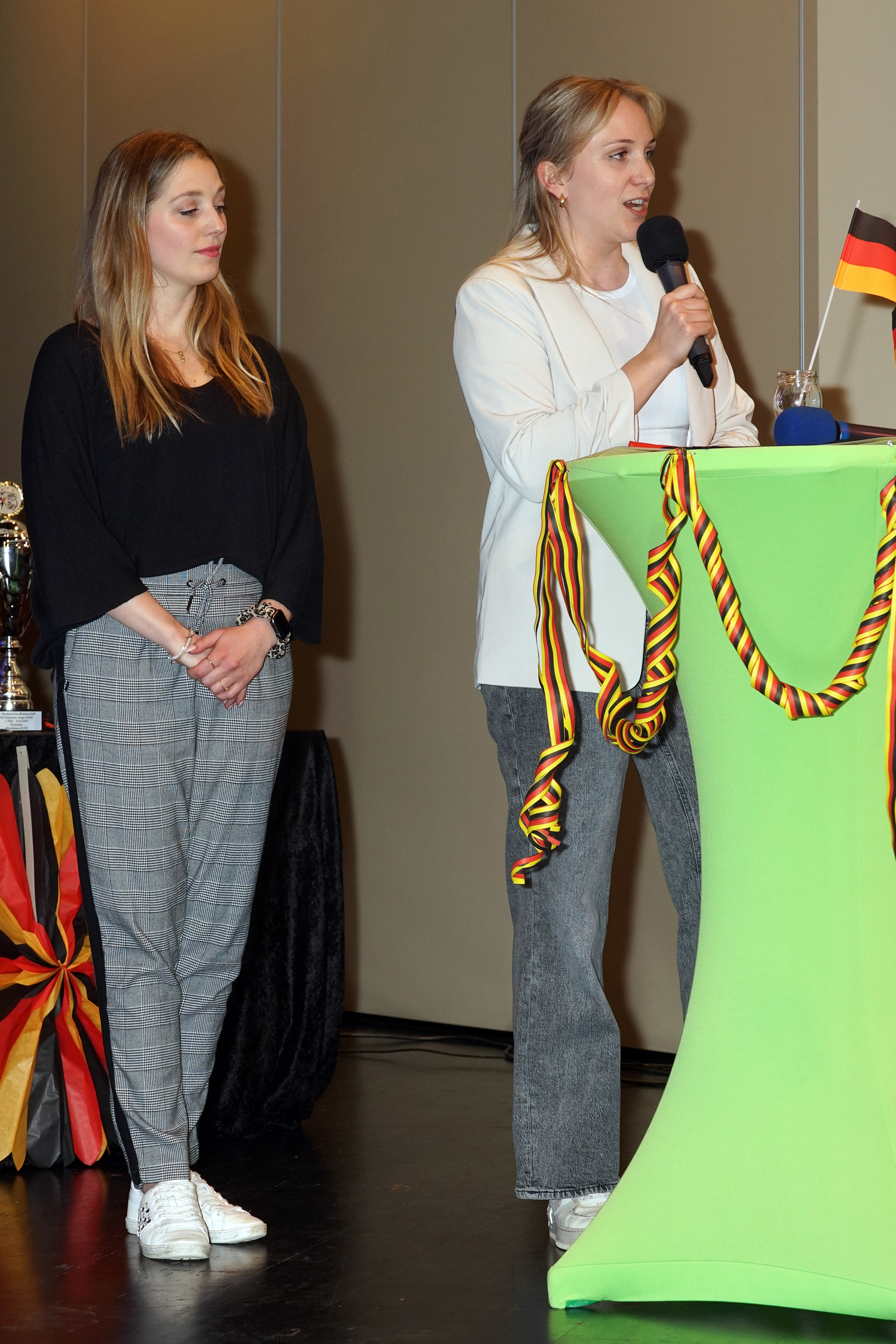 Für das Tanzpaar und die Solisten hatte sich Tamara Hoffart an das Rednerpult gestellt. Sie resümierte die Leistungen der einzelnen Akteure und zeigt auf, welche Leistungssteigerungen, die sich in den ertanzten Punkten ausdrückten, erreicht wurden. Die Krönung des Ganzen waren dann die Qualifikationen unserer Tanzmariechen Luisa Henschel und Anastasia Konstans sowie des Tanzmajors Malte Bürgermeister für die Norddeutschen Meisterschaften. Das alles wurde dann noch durch Malte getoppt, der als erster Tänzer in der Disziplin männliche Solisten der Altersklasse Ü15 Norddeutscher Meister wurde und somit die Qualifikation zur Deutschen Meisterschaft erreichte. Hier musste er sich leider mit dem undankbaren 4. Platz zufriedengeben.