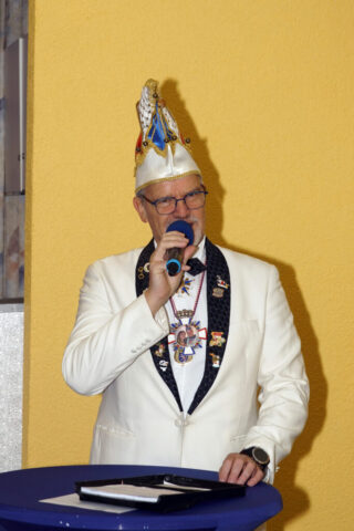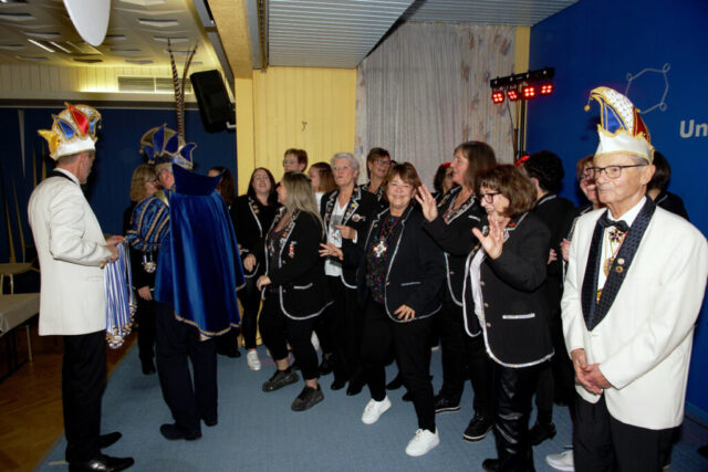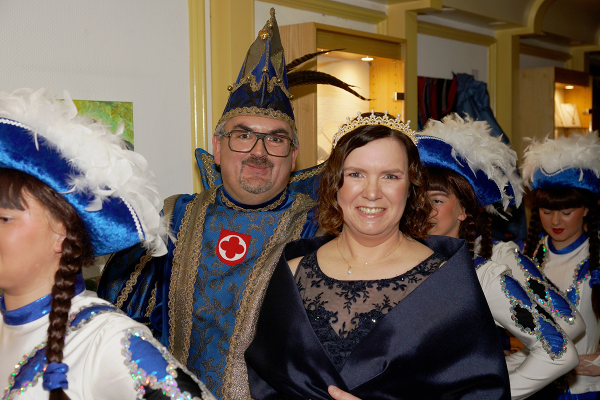 Bevor sie nun das erste Mal die Bütt, das Brett, das die karnevalistische Welt bedeutet, betraten, zeigte ihnen zu Ehren die Prinzengarde ihren aktuellen Marschtanz. In ihrer launigen Antrittsrede begeisterten die beiden die Zuschauer und sorgten immer wieder für Lacher.