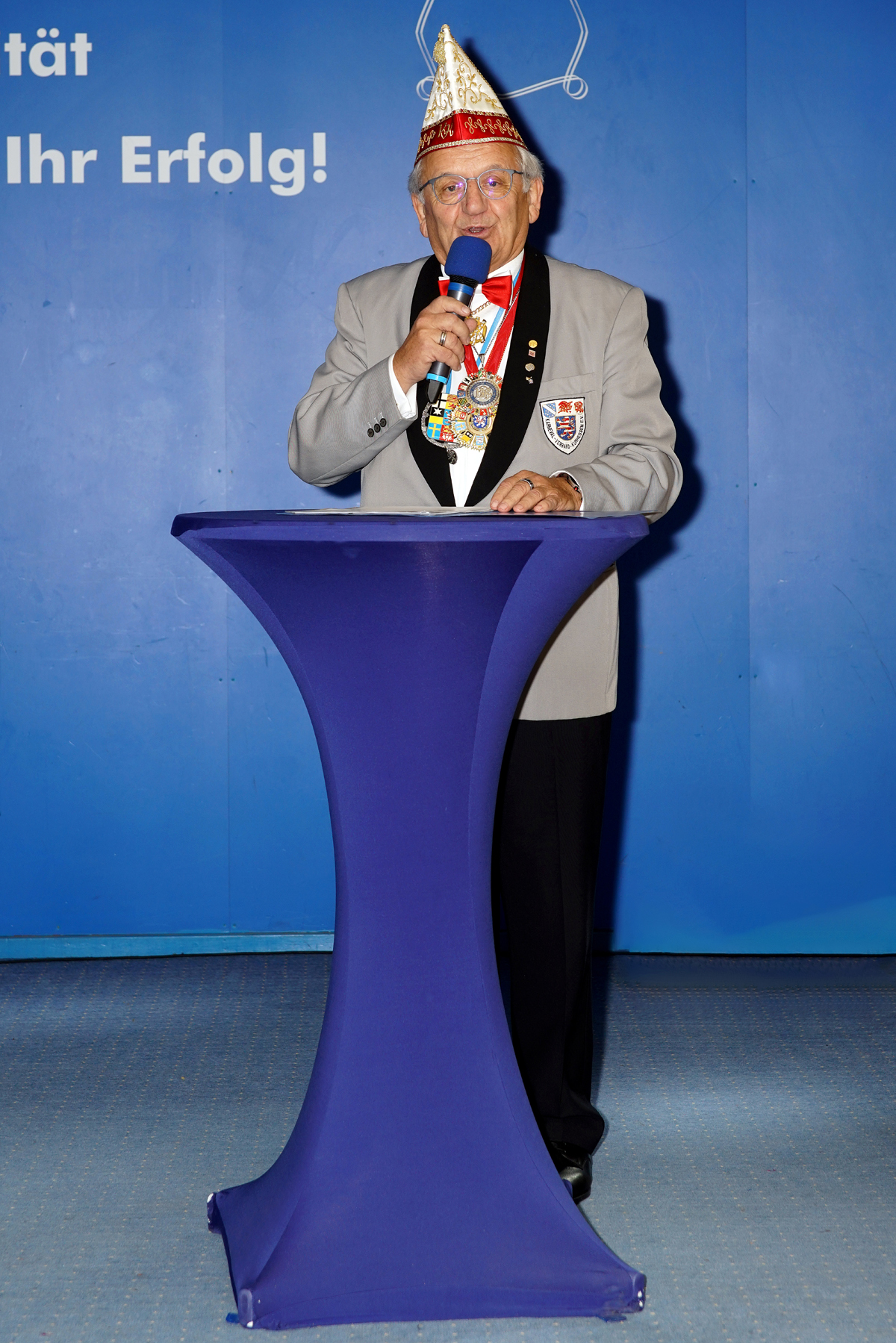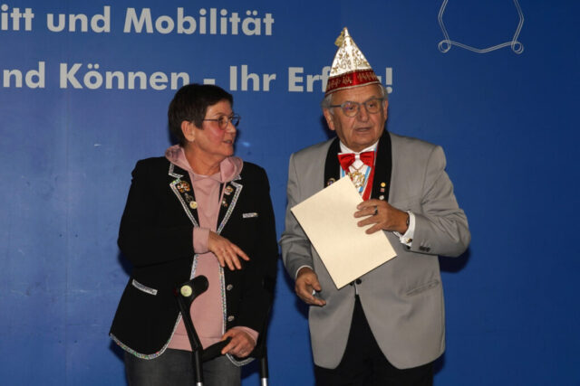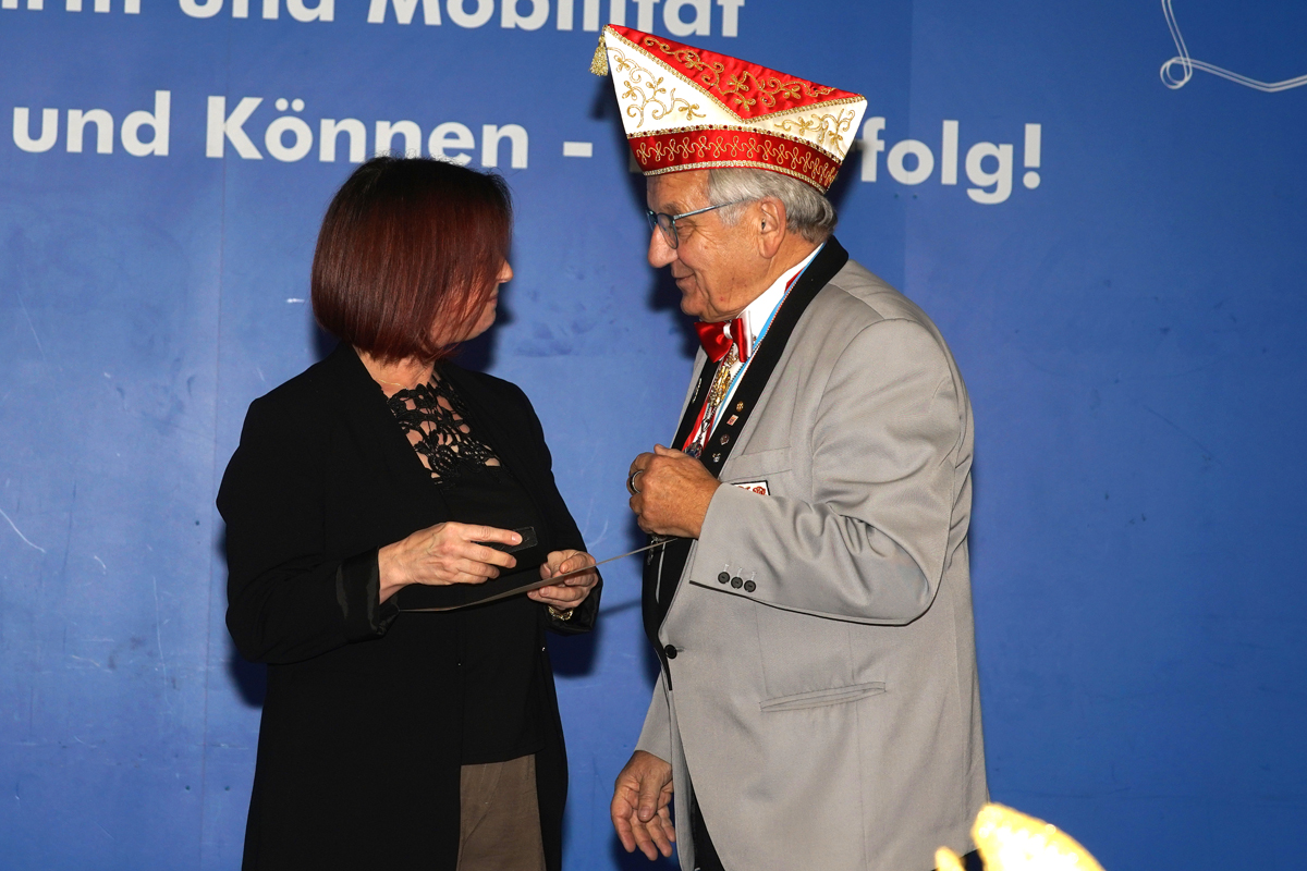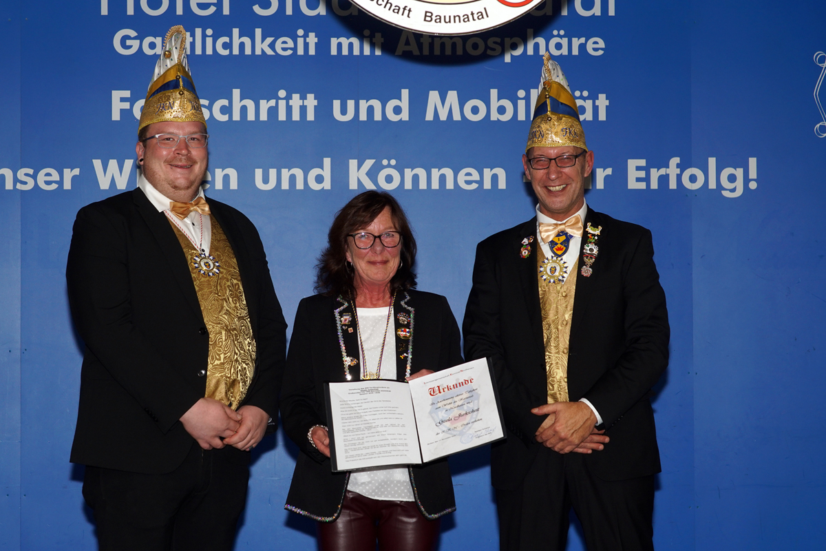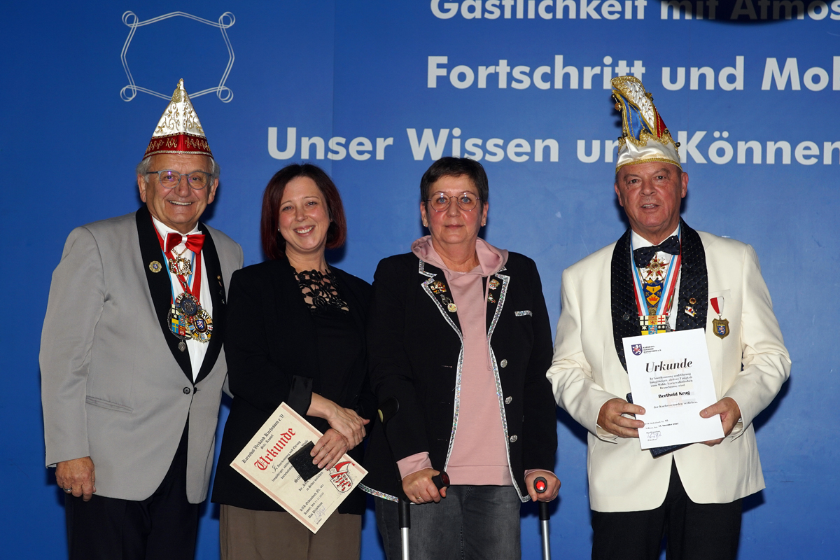 Danach wurde es etwas gediegener, denn es wurden Ehrungen ausgesprochen. Den Beginn machte KVK-Vizepräsident Dietrich Geißer. Nach verlesen der Laudationen wurden Heidi Grünhagen und Silke Siebert mit der Damenbrosche in Silber geehrt. Eine weitere Ehrung erhielt unser Protokoller Berthold Krug. Er wurde mit dem Kurhessenorden des KVK ausgezeichnet. Eine besondere Ehre, die vor ihm bisher nur 64 Mitgliedern des KVK zu Teil wurde.