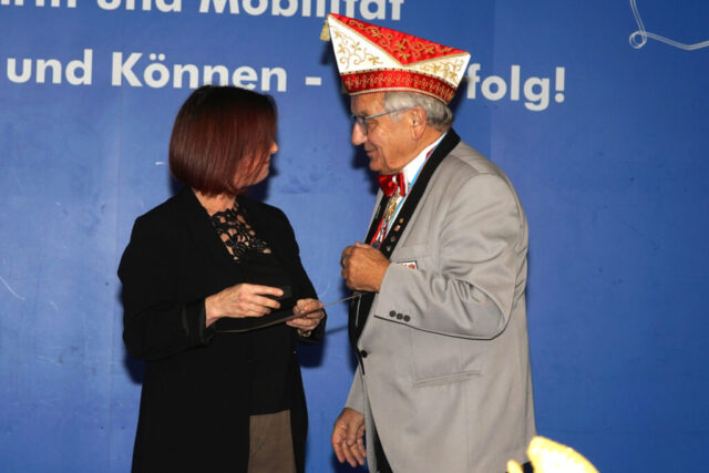 Auch die IKN hatte eine Ehrung zu vergeben. Vizepräsident Ralf Fehr und Sonderbeauftragter Pierre Petri verliehen Gisela Jurkscheit den Verdienstorden der Gemeinschaft.