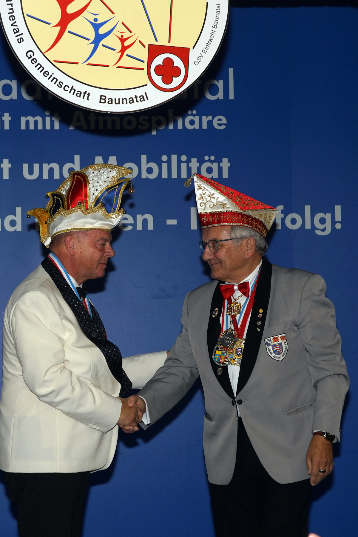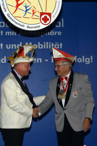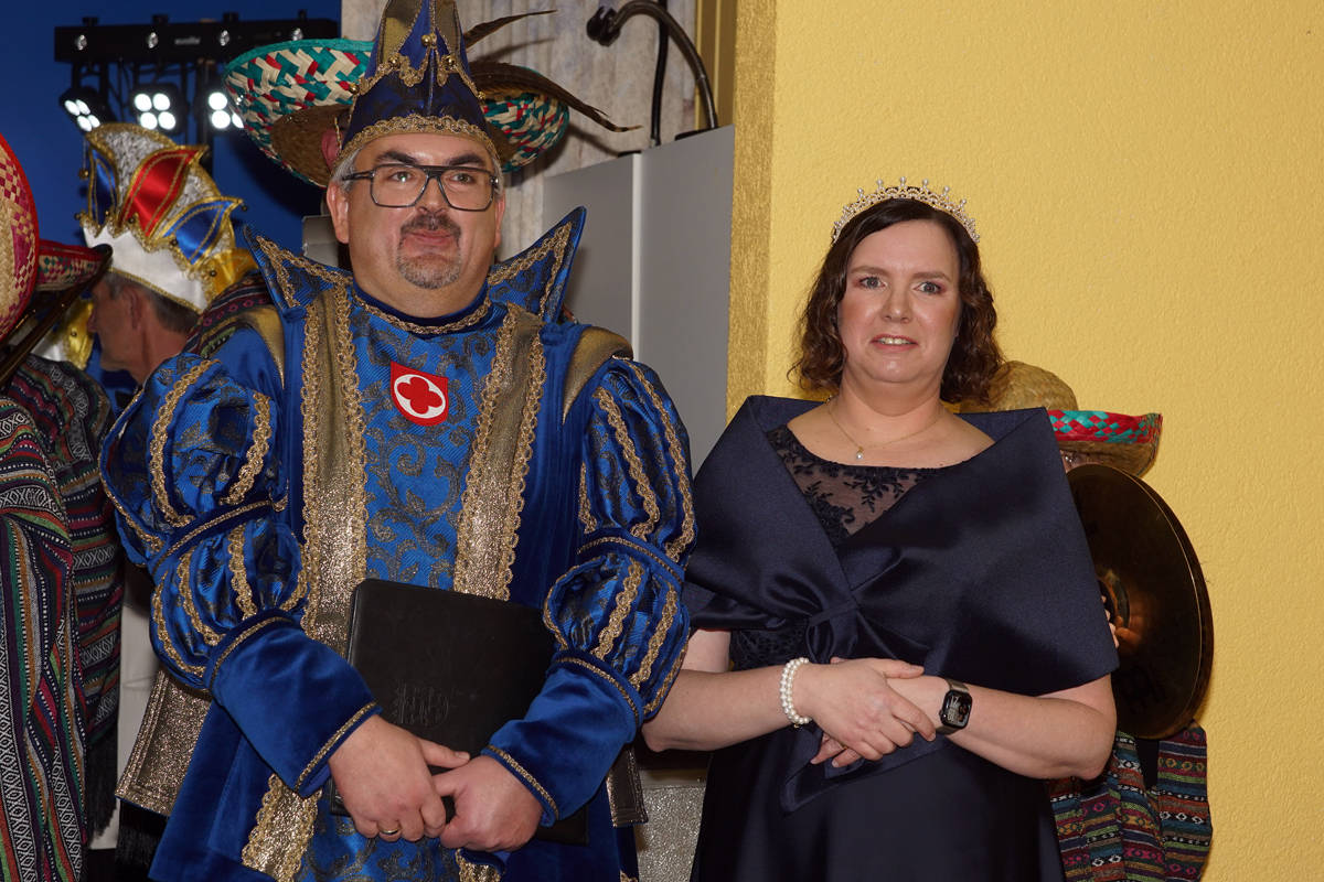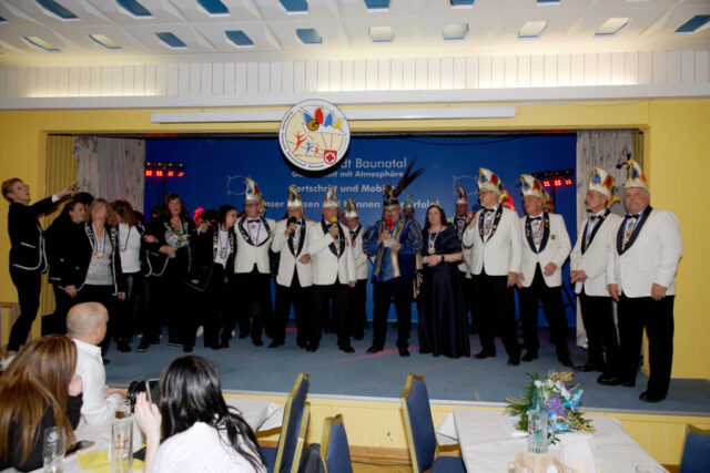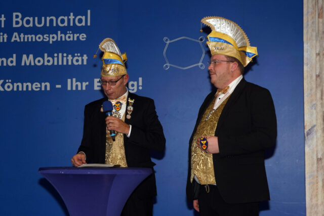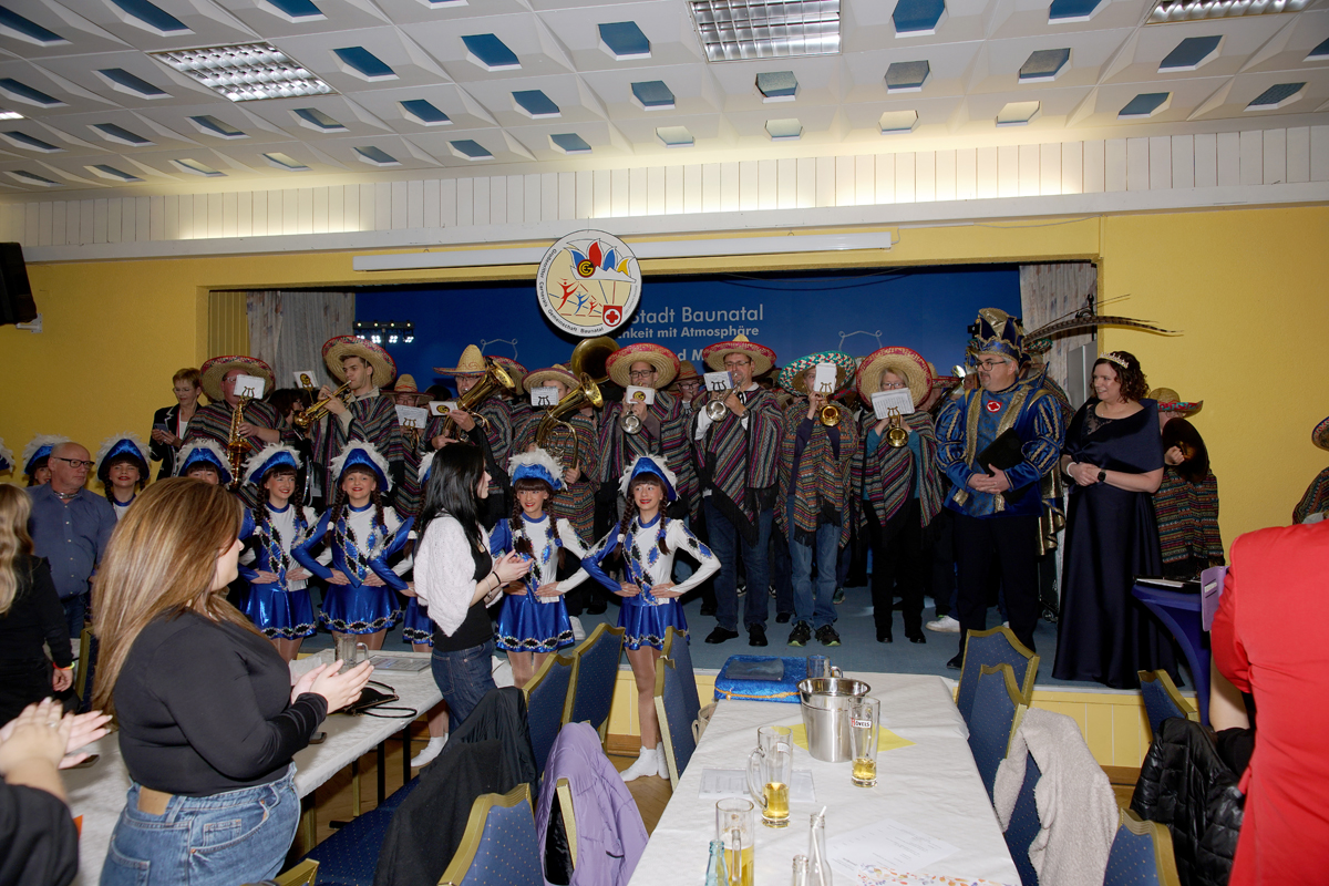 Die beiden betraten in Begleitung der Prinzengarde und dem Musikzug der Eintracht Baunatal den Saal des Hotels Stadt Baunatal. Hier wurden sie mit lautem Jubel vom anwesenden närrischen Volk empfangen.