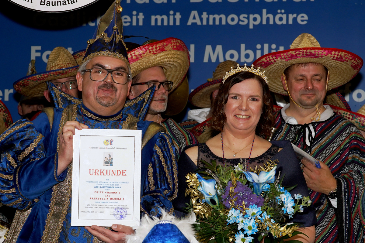 Und mit dem, was jetzt kam, hat keiner gerechnet. Das neue Prinzenpaar kommt dieses Jahr nicht aus den Reihen der GCG. Es handelt sich um Manuela und Christian Strube. Für die kommende Session bekannt unter den Namen Manuela I. und Christian I. Manuela ist Staatssekretärin im Hessischen Ministerium für Arbeit, Integration, Jugend und Soziales in Wiesbaden. Christian verdient seine Brötchen bei der Wirtschaftsförderung Region Kassel. Weiterhin ist er Stadtverordneter im Parlament der Stadt Baunatal.