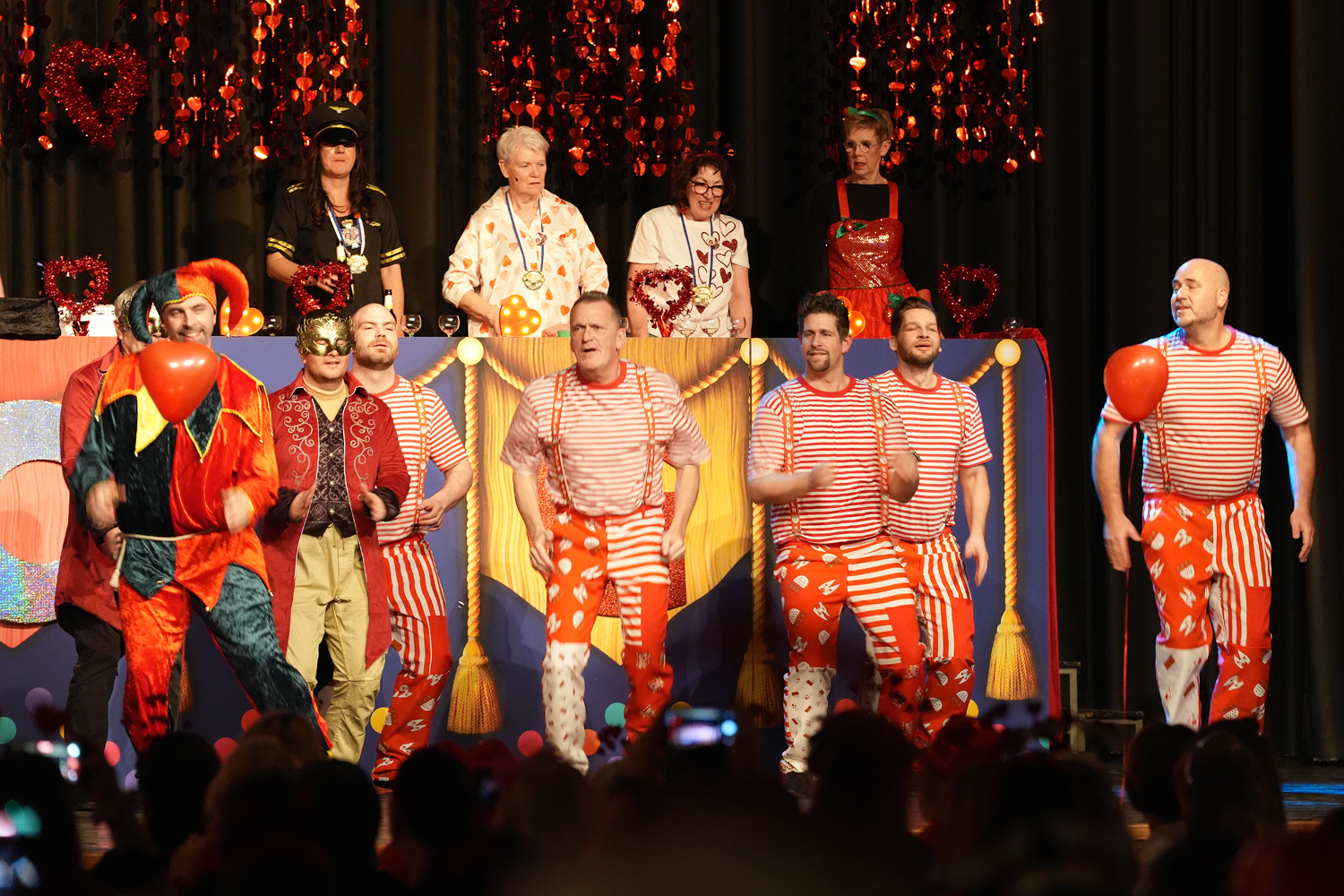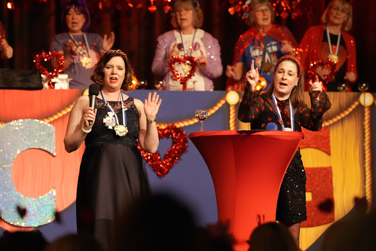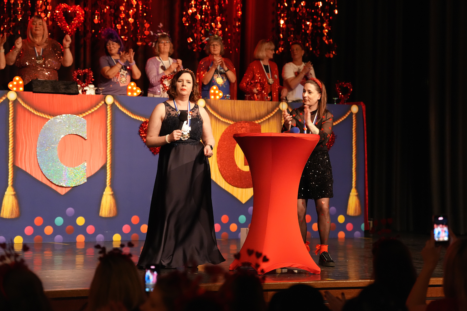 Beides war willkommen, als hunderte feierfreudige Frauen im ausverkauften Saal der Stadthalle Baunatal „Love is in the air“ zelebrierten. In Herzenskostüme gehüllt, mit breitem Lächeln auf den Lippen und Megastimmung wurden die Aktiven der GCG begrüßt und dem Wink der in reines Liebesglück gewandeten Sitzungspräsidentin Christina Vibanco Gonzalez und ihrer ebenfalls strahlenden Vize Sylke Horn Folge geleistet und gute Laune verbreitet.