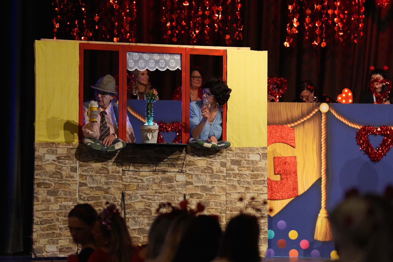 Liebevoll und ausgelassen wurden die Bühnenstürmerinnen in Form der Purzelgarde als wilde süße Tiere, die Rittergarde als schützenswerte Krabbeltiere und die Prinzengarde als fleißige Choreographinnen im Kampf um gute Einschaltquoten gefeiert.
