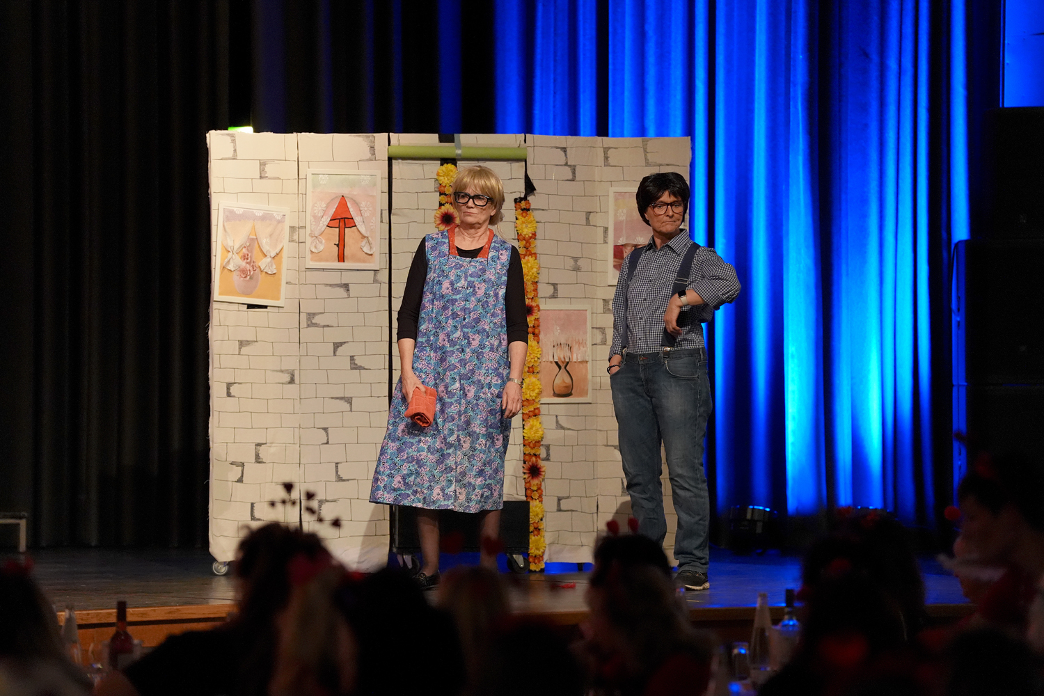 Auch die grandiose Vertanzung des Rechts auf freie Meinungsäußerung von der Stadtgarde wurde gebührend beklatscht und bewundert. Und immer wieder waren alle im Saal gefordert, wenn Sarah mit spanischen Tanzschritten die Frauen zum Mitmachen animierte. Wenn die Beine dann kurz Pause hatten, waren die Hände wieder gefordert bei allen Marschtänzen und dem Medley der Tanzmariechen. Für kräftiges Lachen und Freuen sorgten die Faltenmariechen, als diese den Stadtteil Baunatal-Mitte vierunddreißig-zweihundertfünfundzwanzig genauer unter die Lupe nahmen und komödiantisch Geschichten aus dem wahren Leben vertonten. Auch die Muskeltiere gaben sich viel Mühe und konnten begeistern auf ihrem Weg durch das karnevalistische Leben, andere Länder, andere Sitten. Und natürlich durfte das Singen nicht fehlen und als aus hunderten Kehlen die Flugzeuge im Bauch purzelten, war klar, wir alle feiern das Leben und lassen viel Liebe da! Wunderbar und bis zum nächsten Jahr!