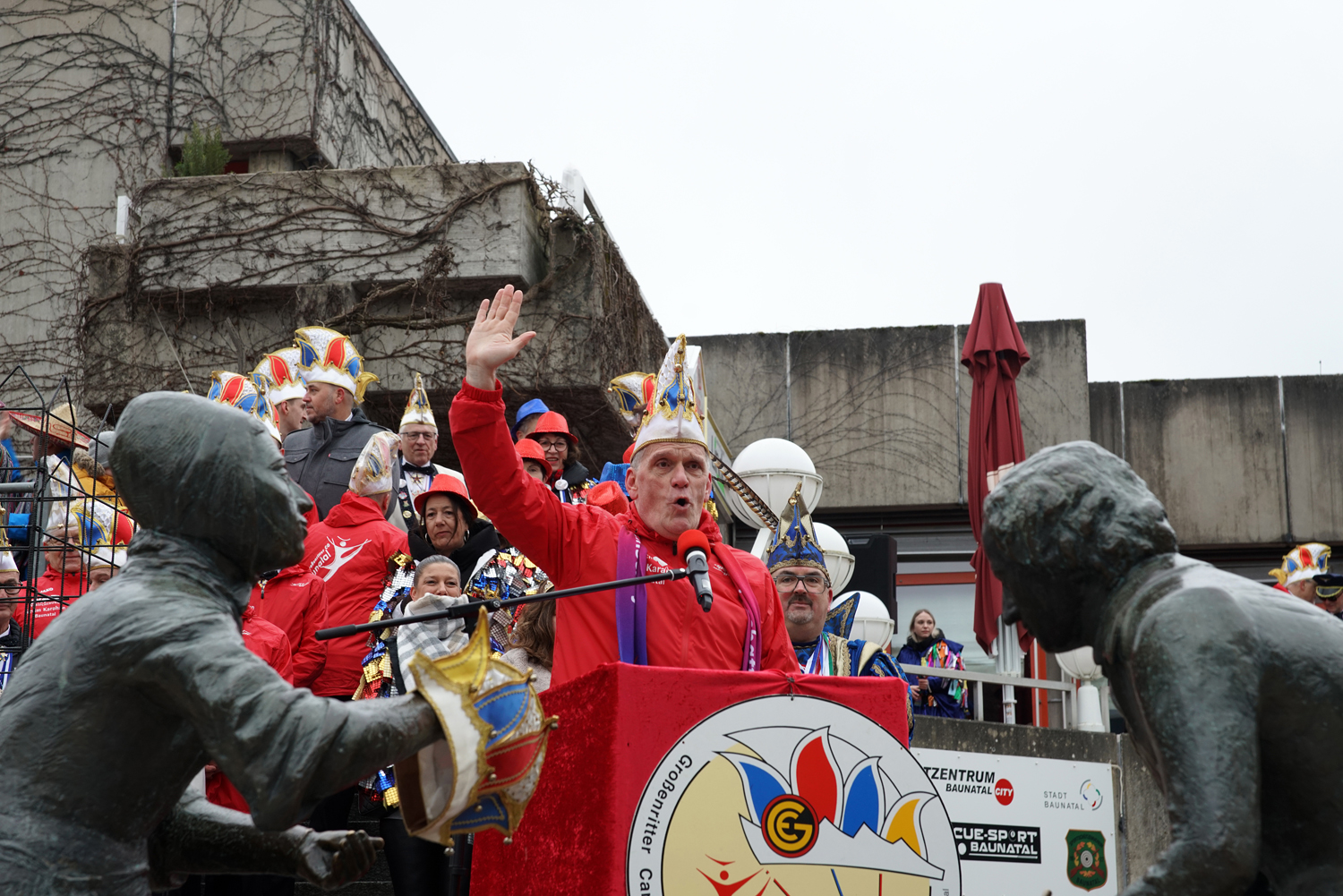 Vergangenen Samstag stand der alljährliche Sturm des Rathauses auf dem karnevalistischen Plan. Die GCG machte sich mit großem Gefolge in der Baunataler Innenstadt auf den Weg zum Märchenbrunnen, um dort den Plan in die Tat umzusetzen. Angeführt wurde der Tross vom Musikzug des GSV Eintracht Baunatal.