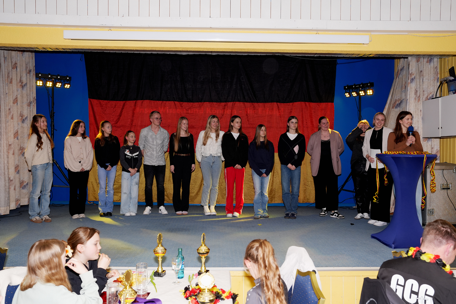 Nach den Deutschen Meisterschaften gibt es traditionell die Saisonabschlussfeier der GCG. Aus Platzgründen musste die GCG dieses Jahr in das Hotel Stadt Baunatal ausweichen. Der prall gefüllte Saal platzte erwartungsgemäß aus den Nähten.