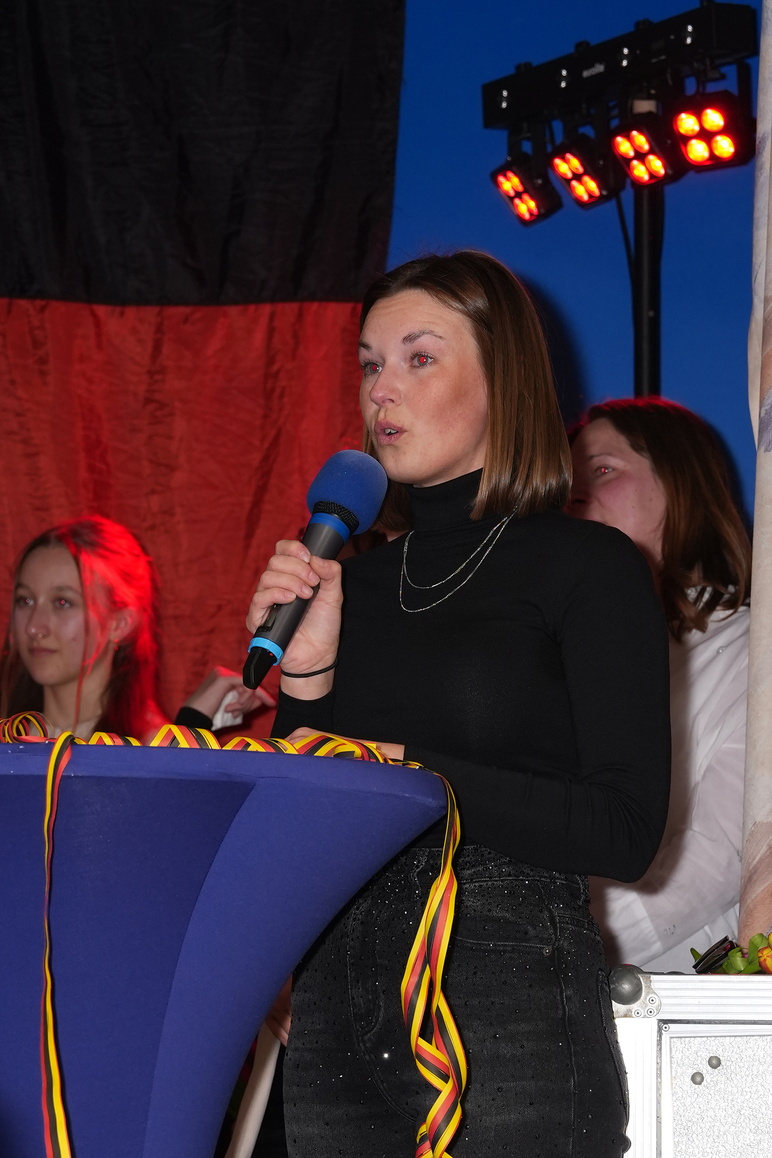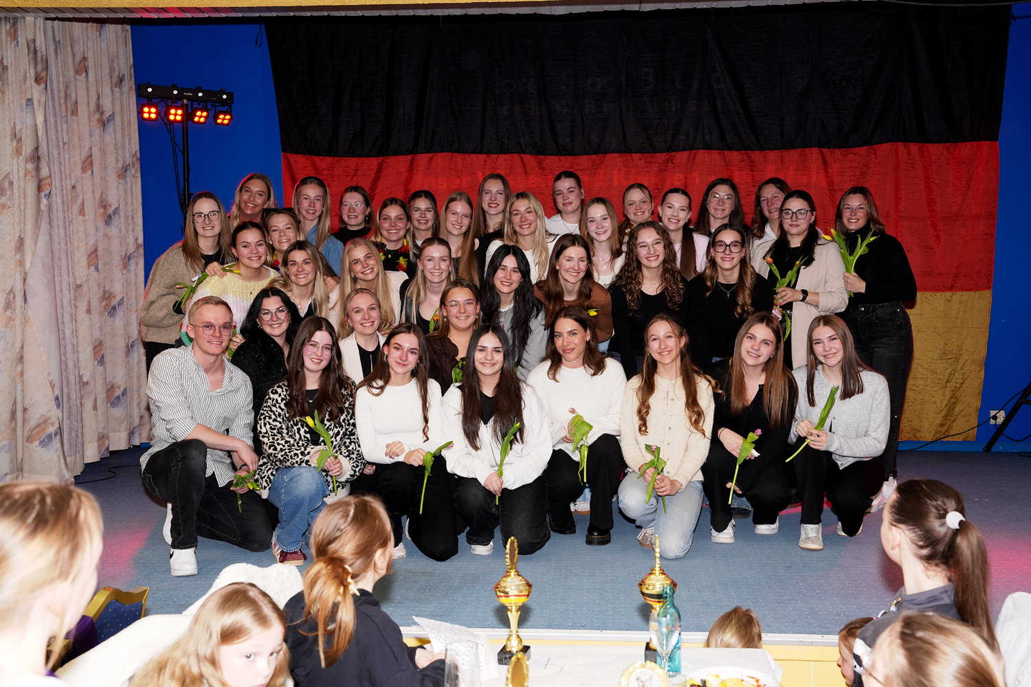 Durch ein Spalier von Tulpen, die die jüngeren Tänzerinnen in den Händen hielten, bahnte sich die Stadtgarde ihren Weg auf die Bühne. Nachdem jede Tänzerin und natürlich Malte die Tulpe überreicht bekommen haben, nahm sich Alena Seifert das Mikrofon und hielt die letzte emotionale Rede des Abends. Auch sie sprach allen ihren Dank aus und versprach, dass jetzt nicht der Kopf in den Sand gesteckt wird.