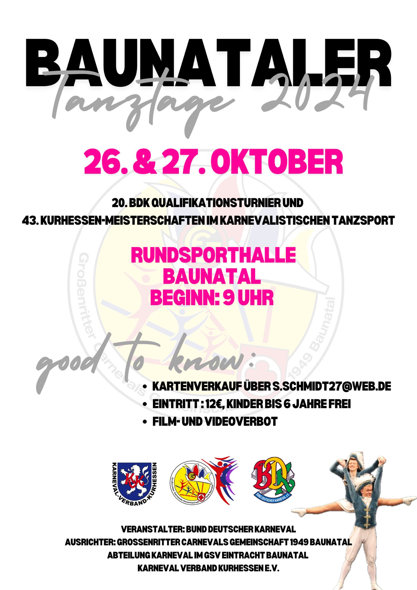 Wann 26. Oktober 2024 - 27. Oktober 2024 Ganztägig Zum Kalender hinzufügen ICS herunterladen Google Kalender iCalendar Office 365 Outlook Live Wo Rundsporthalle Baunatal Friedrich-Ebert-Allee, Baunatal, 34225 Veranstaltungstyp Turniere Erste Infos zur Veranstaltung findet ihr hier: weitere Infos hier Ausschreibung Turnier Baunatal 2024