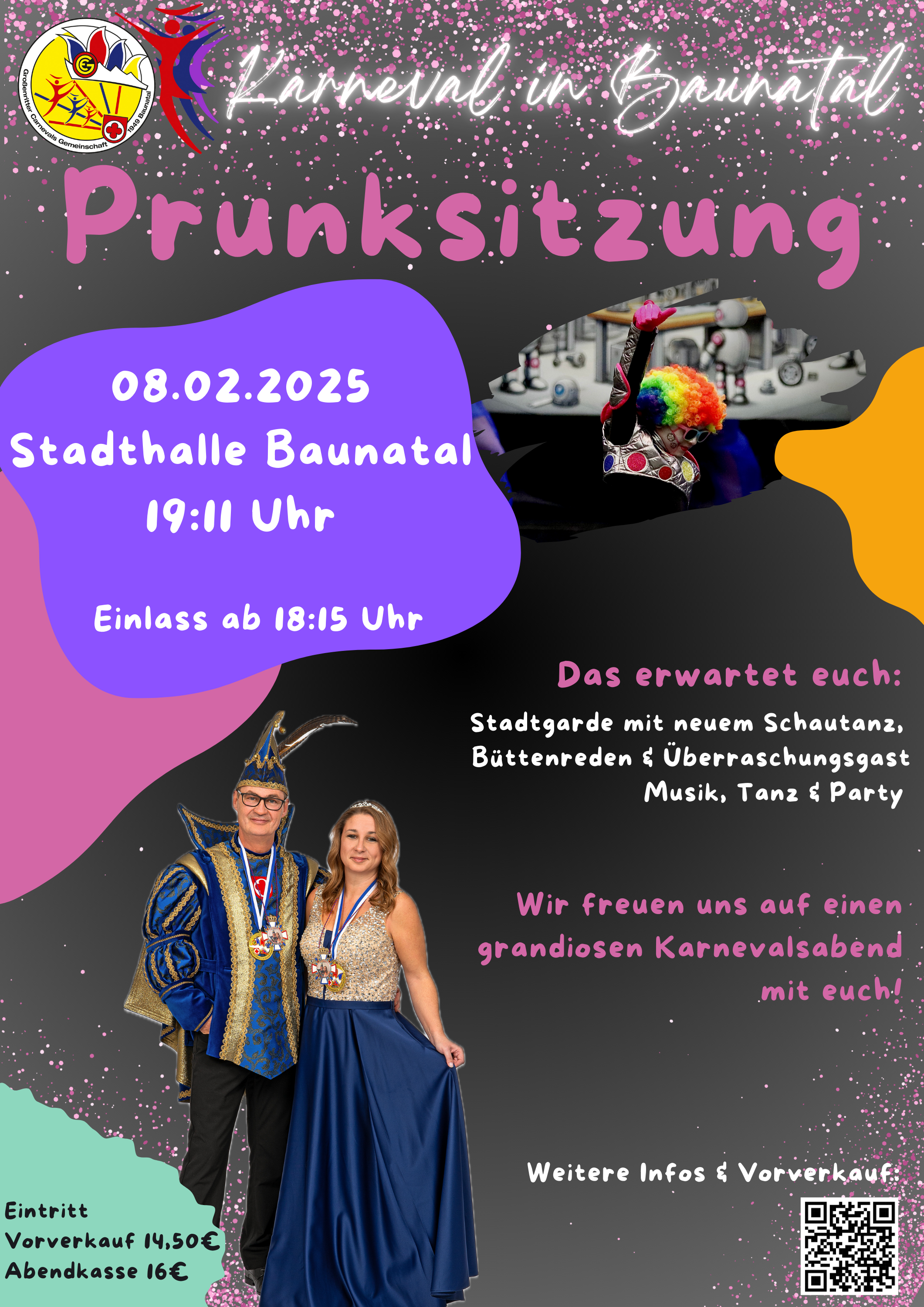 Wann 8. Februar 2025 19:11 - 23:59 Zum Kalender hinzufügen ICS herunterladen Google Kalender iCalendar Office 365 Outlook Live Wo Stadthalle Baunatal An der Stadthalle 1, Baunatal Veranstaltungstyp Kampagne Prunksitzung am 08.02.2025: Vorverkauf Stadtmarketing Baunatal GmbH, Friedrich-Ebert-Alle 8 a, 34225 Baunatal, Tel.: 0561/95379580 Ticketpreise: Vorverkauf: 14,50 Euro inkl. Gebühr / Abendkasse: 16 Euro